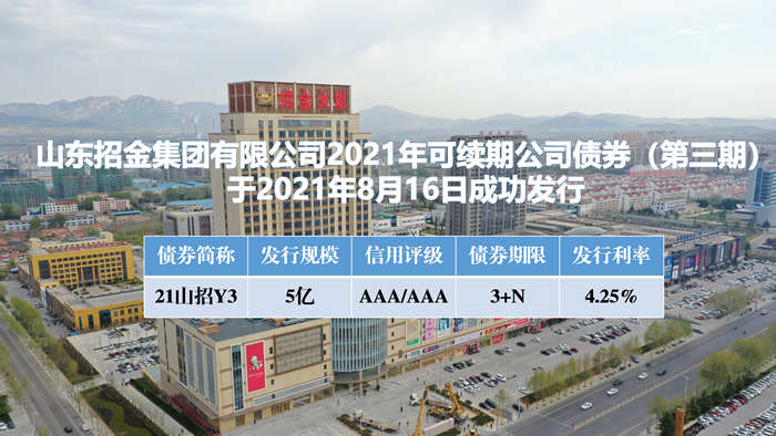 8月16日,山东招金集团有限公司成功发行5亿元可续期公司债券。本次票据发行票面年化利率4.25%,较中长期贷款LPR4.65%低40BP。